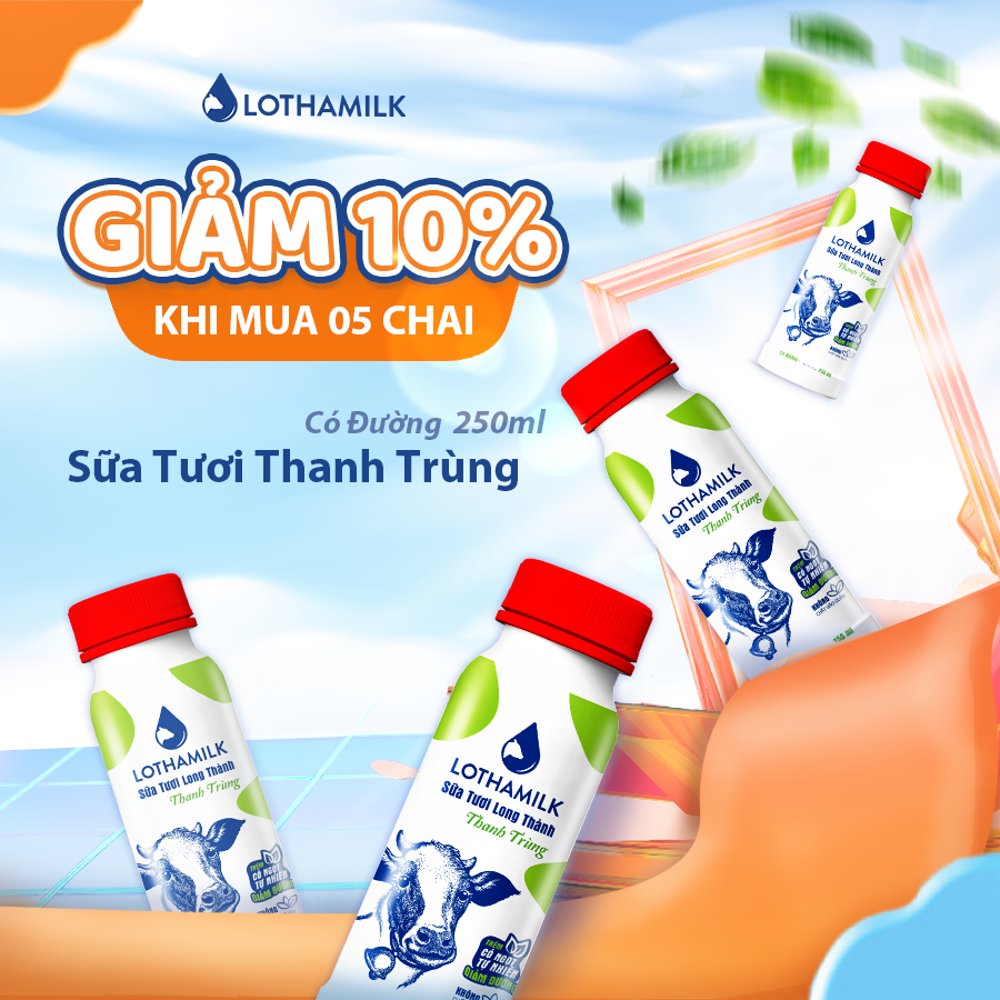 Combo 5 Sữa Tươi Thanh Trùng Lothamilk Có đường chai 250ml